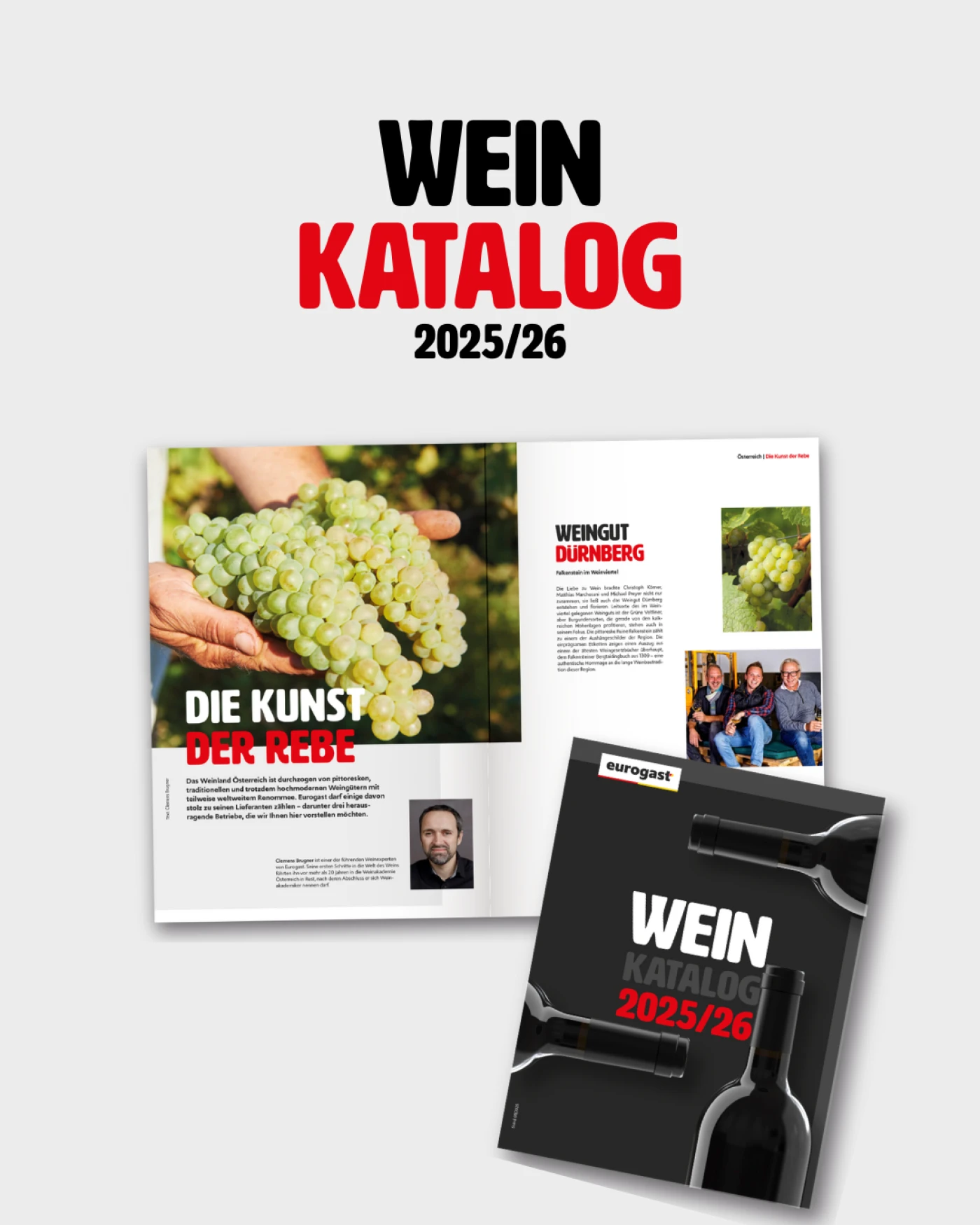 Der Weinkatalog 2025/26 ist die dritte Ausgabe – er steckt also noch immer ein Stück weit in den Kinderschuhen. Unser Vollsortiment umfasst nicht nur Lebensmittel, sondern auch ein facettenreiches Wein- und Schaumweinsortiment – ein Angebot, das wir vielen unserer Kund:innen noch stärker näherbringen möchten. Wer den Katalog noch nicht kennt oder noch nie in der Hand hatte, kann sich gerne vertrauensvoll an die zuständigen Betreuer:innen bei Eurogast wenden. Die Entstehung des Kataloges ist ein laufender Prozess: Über das ganze Jahr hinweg beobachten wir im Einkauf gemeinsam mit unseren Weinexpert:innen aktuelle Trends und nehmen regelmäßig neue Winzer:innen und Weine in das Sortiment auf. Der Katalog ist also lebendig und entwickelt sich ständig weiter.