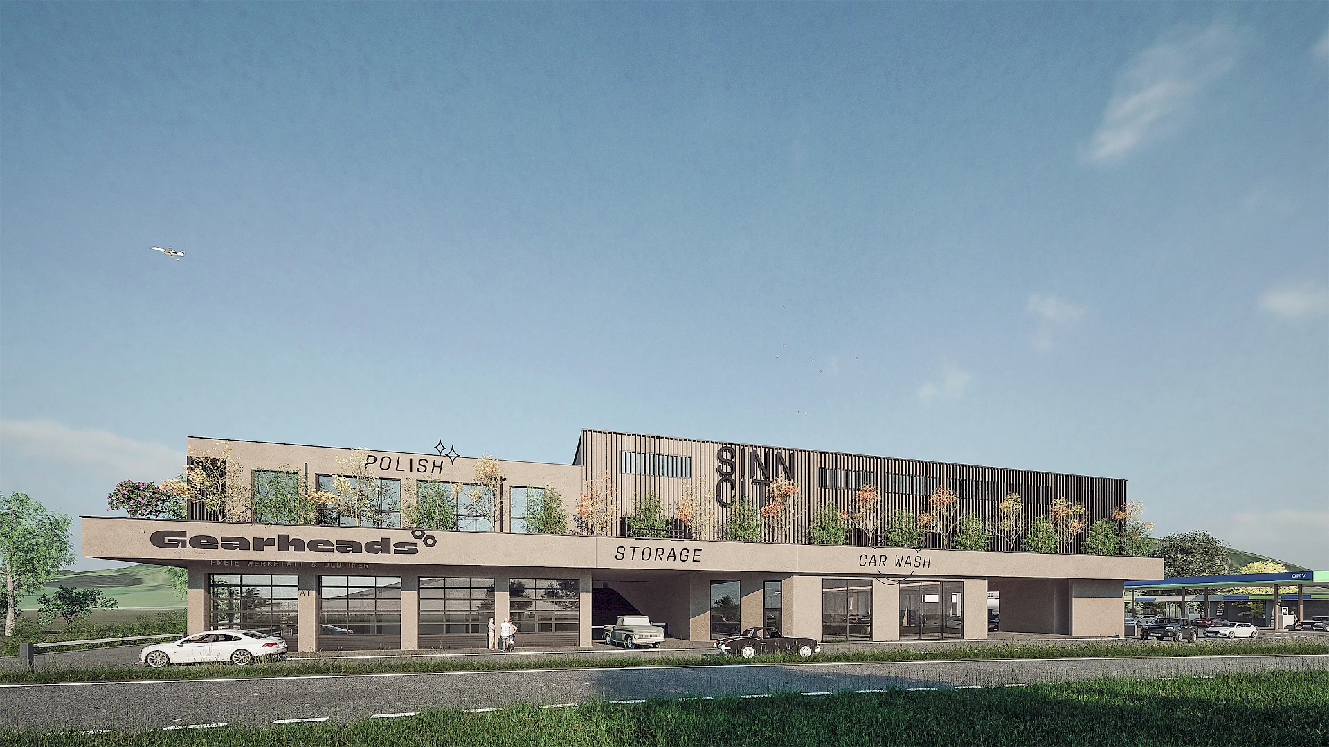 „SINN.CITY“ leitet sich vom Nachnamen Sinnesberger ab – doch die Assoziation zum Film „Sin City“ oder zum Synonym für Las Vegas kam uns da natürlich sehr gelegen. Das macht einerseits neugierig und andererseits den Namen leicht merkbar. Und auch inhaltlich passt er perfekt zu unserem Ansatz: Wir versuchen, ein Großstadtkonzept aufs Land zu bringen. Die Waschstraße ist dafür ein gutes Beispiel: modern, effizient und ungewöhnlich für den ländlichen Raum – und genau deshalb etwas Besonderes.